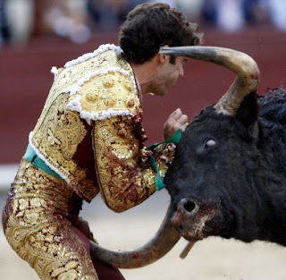 Bombazo de López Simón en la Maestranza: oreja sangre y oro y cornada; y un buen toro de Núñez del Cuvillo, condenado al ostracismo de los corrales por la perspicacia de quienes enlotan; un sobrero, un excluido, se erigió en rey de la tarde. Ese toro debiera haber sido destinado a José Tomás si él y Cuvillo no se hubieran devuelto las cartas y todo lo demás: incluido el rosario de la madre. Los redondos de rodillas de López Simón, la estocada y el agujero que le roturó el muslo, quedarán en la historia de esta Feria.